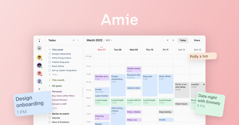 Amie - Calendar, Schedule, To-do & Personal CRM at your fingertips.