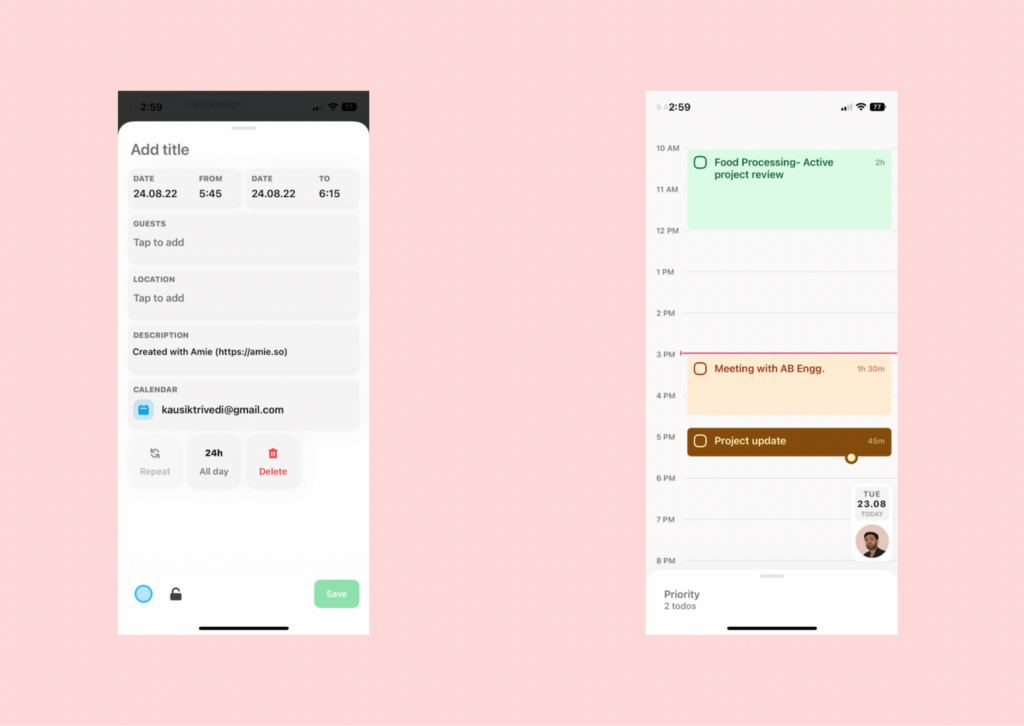 Amie offer a joyful calendar experience with fluid, intuitive and faster UI experience with pleasing aesthetics.