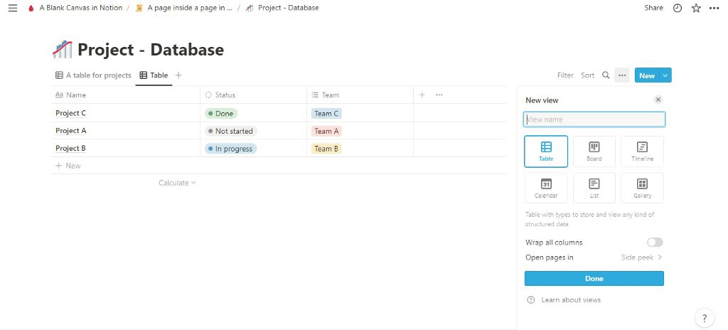 Both offers to choose from existing database table or to start fresh and with Notion you will have option to go for simple table as well which can be converted later on as database.