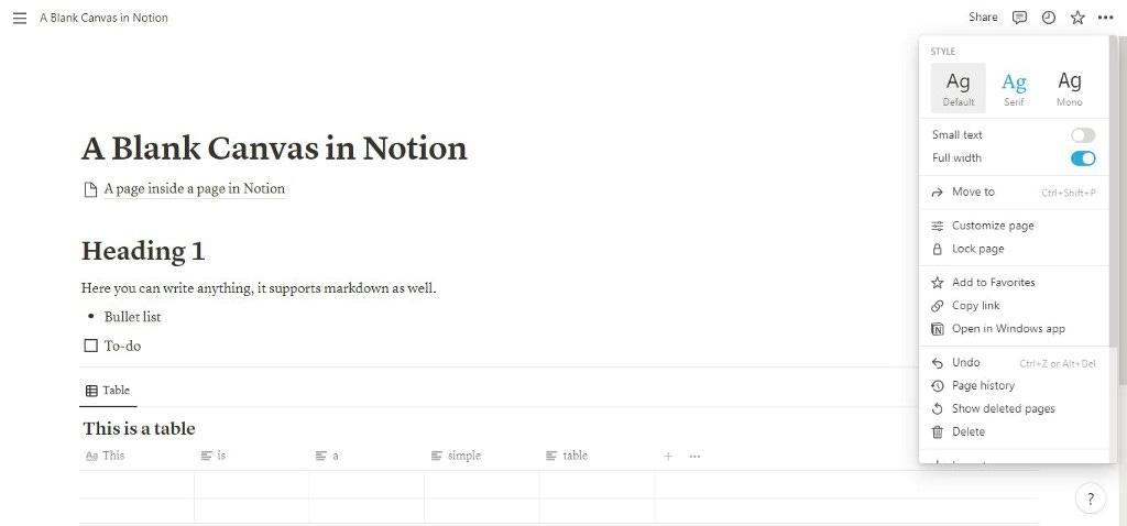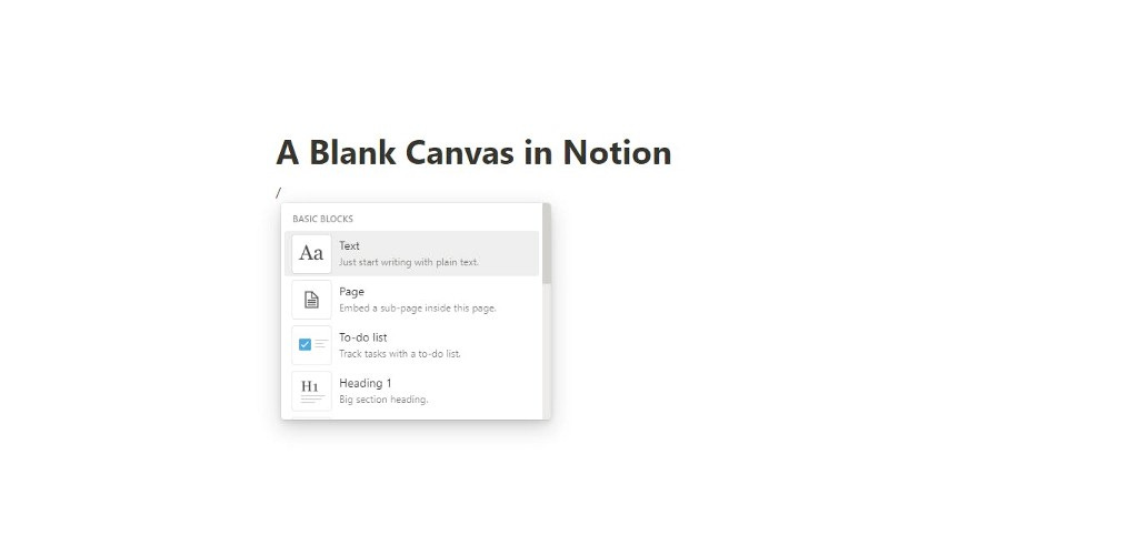 Notion offers a blank canvas with similar yet difference approach, you can start writing on the empty canvas or use templates with standard offering like tables, board, list etc.