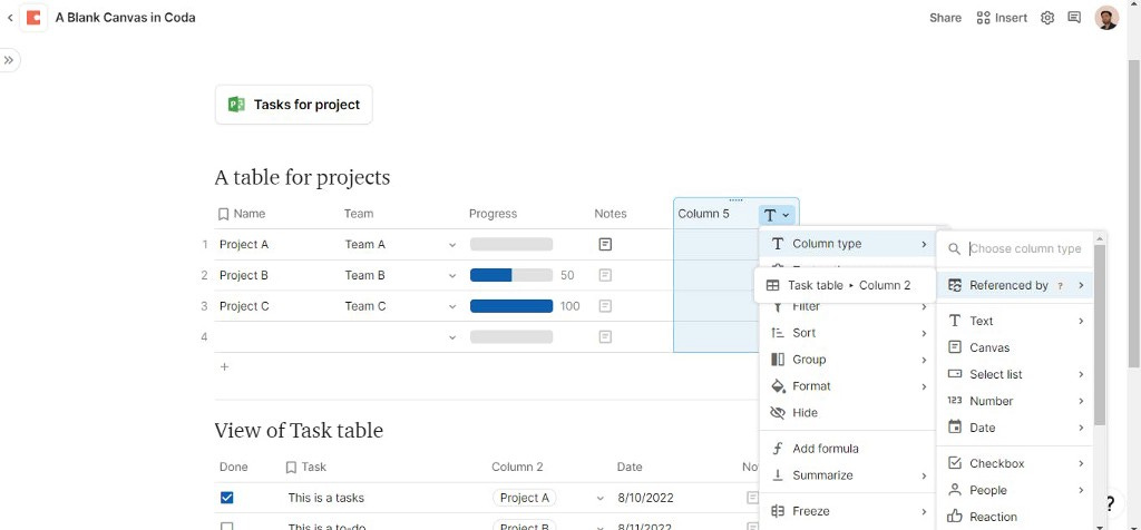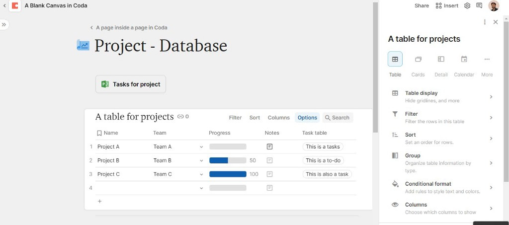 Coda calls it Lookup property and Notion calls it Relation & Rollup — both are advance property to handle your project and task management. You can create multiple views and dashboard to manage your priorities with tasks and projects.