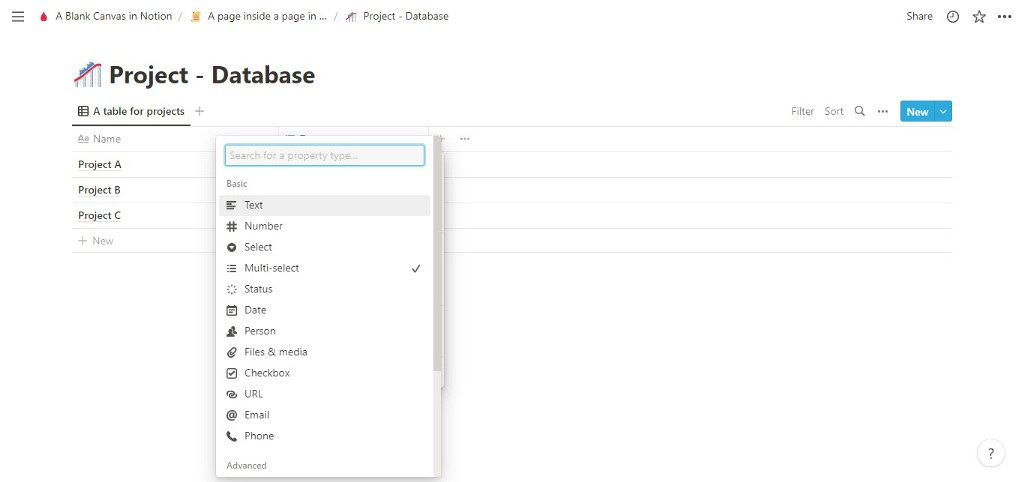 Database of Notion offers feels more fluid with ease of data property type entry like multi-select or newly added status property (default), also with Notion you can just by a click, view of your database in board, list calendar, timeline or gallery view and add options in the same database as well.
