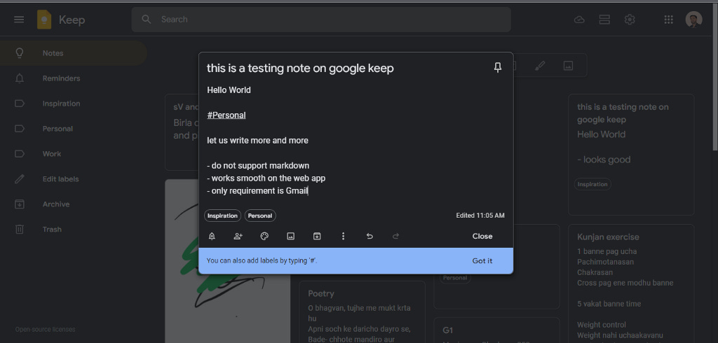 you can add label, duplicate the note, change the background themes, set reminders, collaborate… what else do we need.